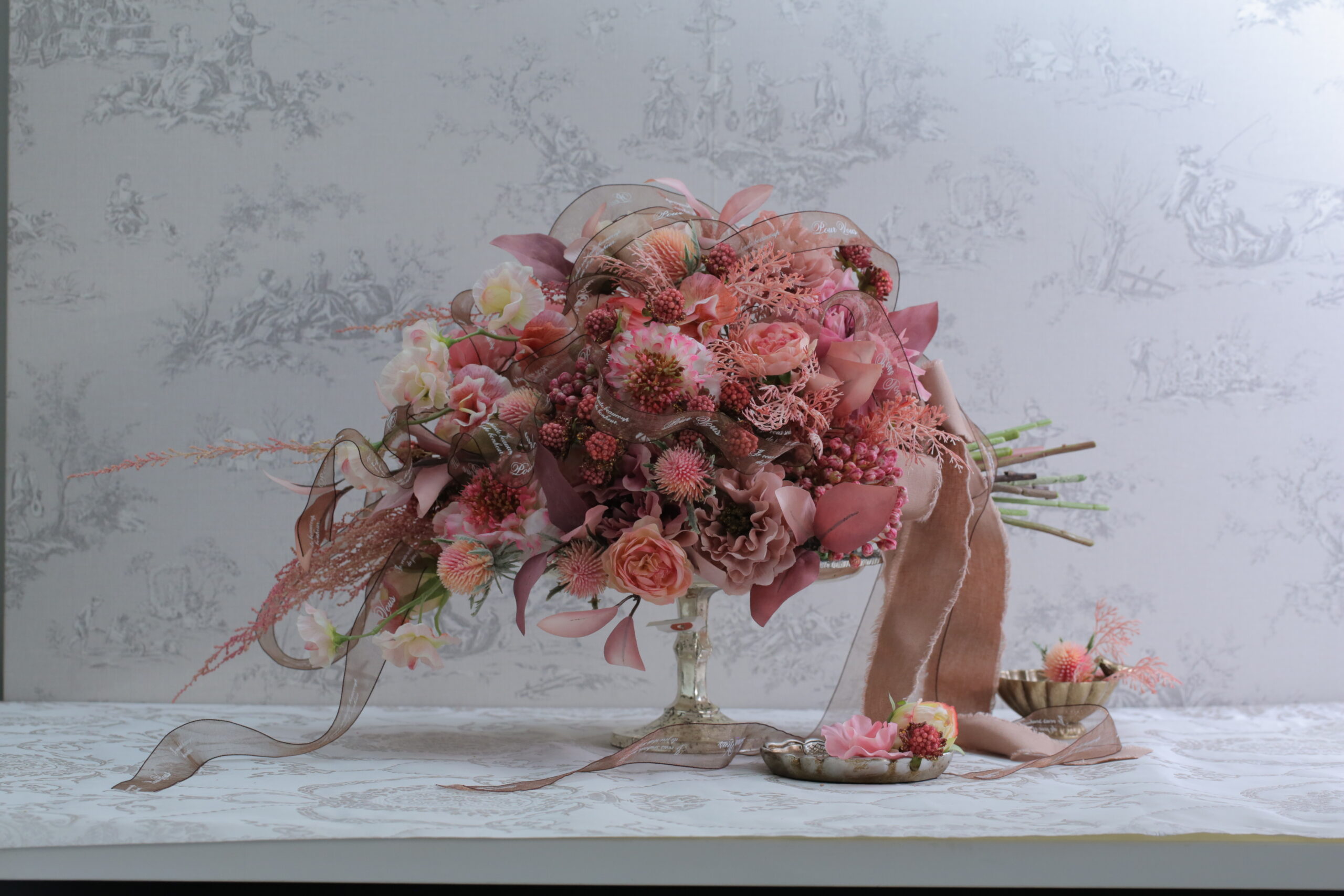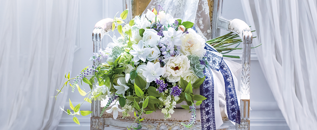 ご希望の色合いやお花の品種など、ドレスや花嫁さんの雰囲気にぴったりのウェディングブーケをお作りいただけます。