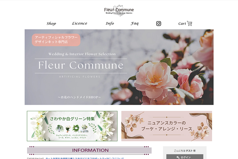 ビジネスサポートコースとは、アーティフィシャルフラワーのデザインキットを販売するショッピングサイト「フルールコミュン」の商品をお安く購入できるライセンス取得を目的としたレッスンコースです。