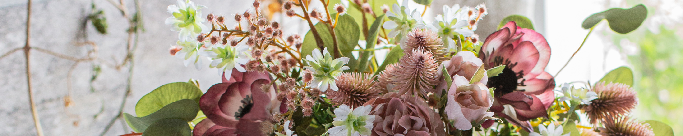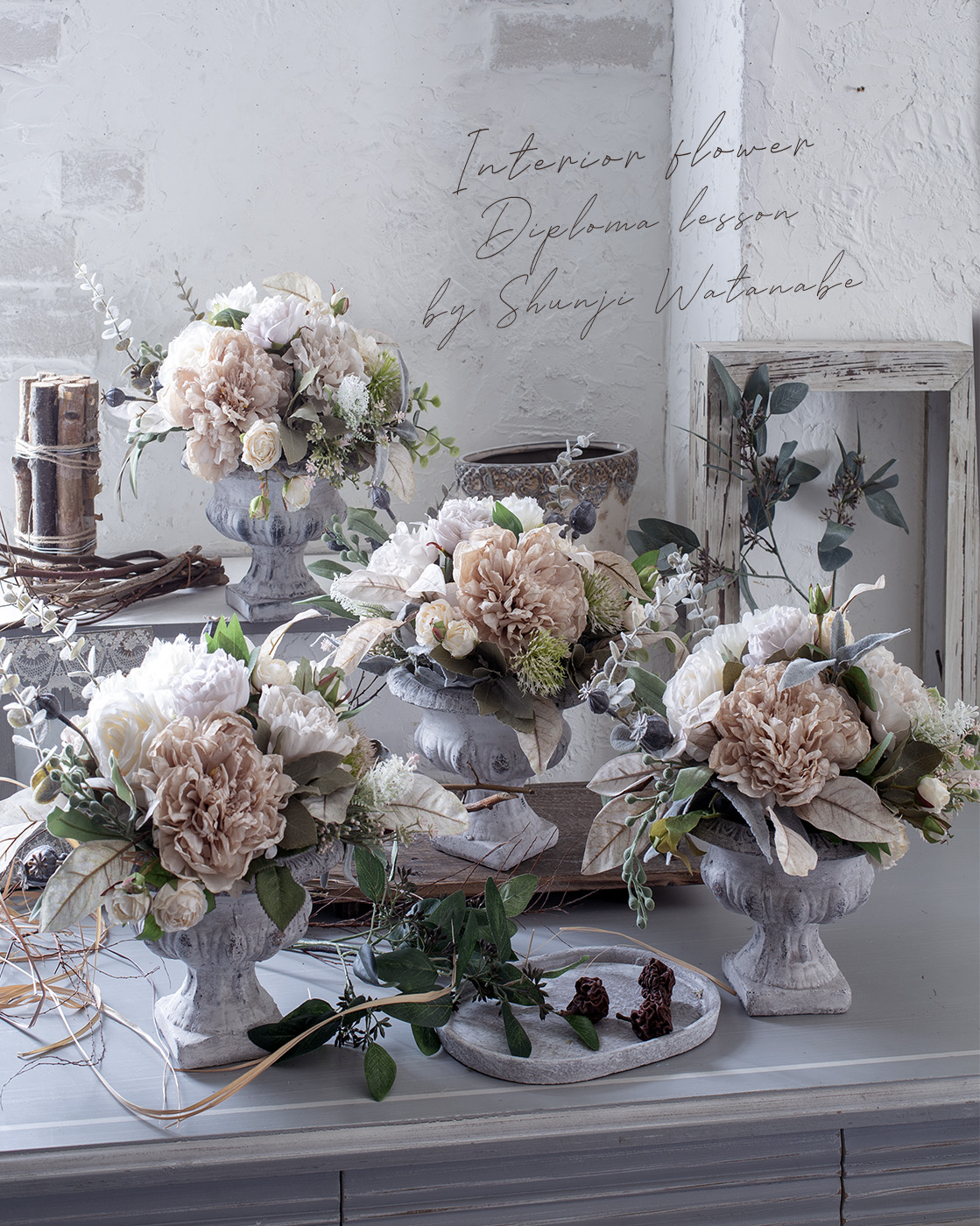 高品質なアーティフィシャルフラワーを使ってナチュラルでデザイン性の高いインテリアフラワーを制作するレッスンです。