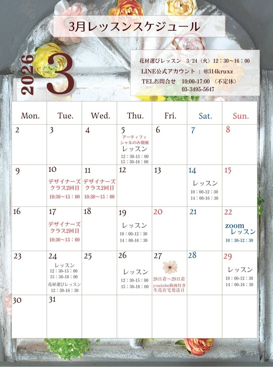 レッスンスケジュールについて